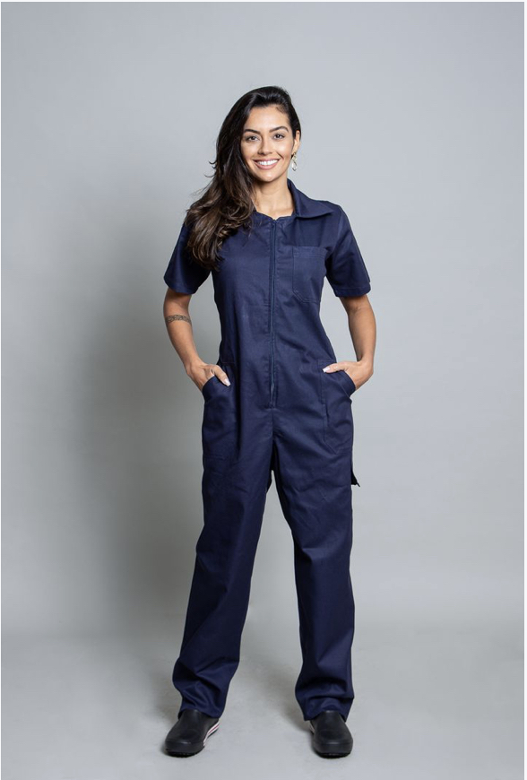 - Confeccionado em brim leve 100% algodão, respirável, resistente e confortável para longas jornadas;